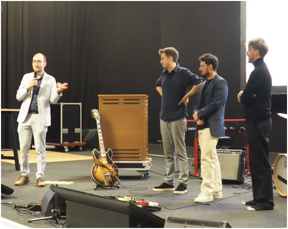 Ondertussen speelde Maxime Moyaerts op de Hammond B-3 van de club over twee Leslies, vergezeld van Arnaud Cabay op de drums en Bastien Jeunieaux op elektrische gitaar. Bastien gebruikte een Fender Deluxe Reverb versterker. Er is een specifieke reden dat ik dat noem: De Deluxe Reverb is een relatief kleine versterker met een vermogen van ongeveer de helft van dat van een Lesliekast.