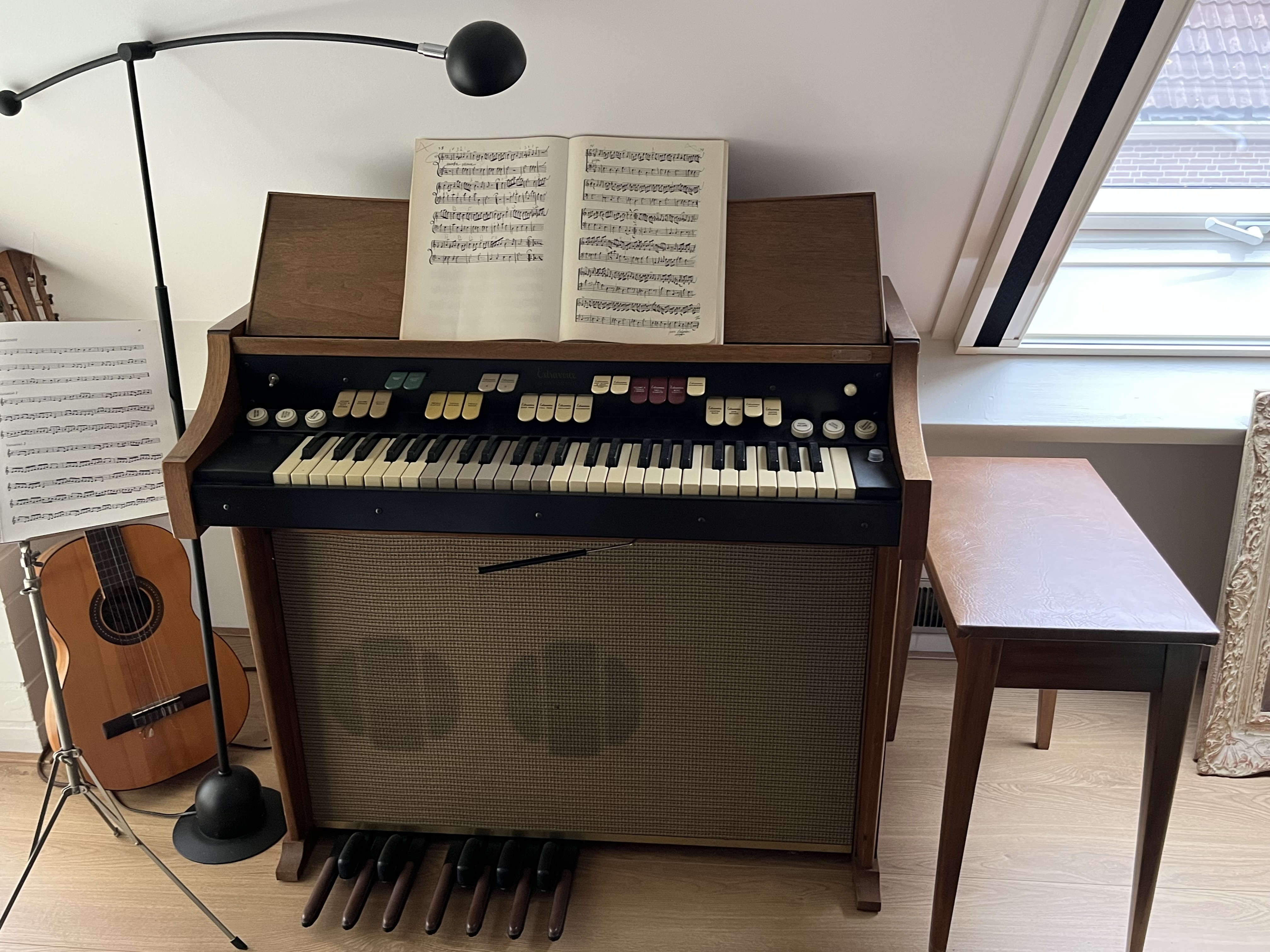 Dit is een prachtig orgel met een dijk van een geluid. Ik moet er helaas afscheid van nemen vanwege ruimtegebrek. De beige hoes van de versterker maakt opstelling in een gewone huiskamer vanwege de grootte en de skai-bekleding mogelijk.