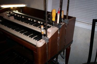 Vervolgens werd het instrument door de eigenaar van (on)nodige opsmuk voorzien en is het orgel een nieuw werkpaard geworden voor: John Lancaster van de Gary Allen Band.