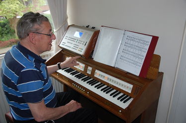 Enkele jaren geleden had je een Yamaha-orgel. Heb je momenteel nog een orgel om te bespelen?Momenteel speel ik op een Content-orgel. Eén klavier, maar wel met drie MIDI-kanalen. Dus een compleet digitaal orgel. Ik kan er van alles mee doen (bijv. nagalm), alleen er zit geen vibrato en ook geen percussie op. Dat vind ik een beetje jammer. Alle kerkmuziek die ik vroeger heb gespeeld, kan ik met deze Content nog een beetje nabootsen. Jazzy-muziek - met ritme erbij - wordt echter moeilijk. Ik heb hier een Orla-expander bijstaan. Die gebruik ik als ritmebox en voor akkoordbegeleiding.