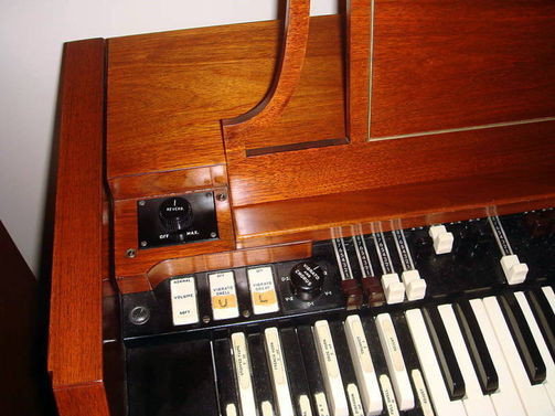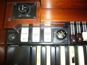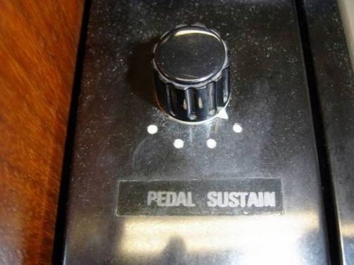 Hieronder de (Pedaal) Sustain-draaiknop, van Model A-122 S, het in Antwerpen gebouwde model, welke voorzien werd met deze Sustain-functie.