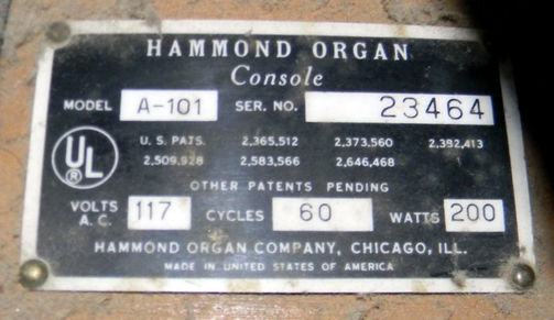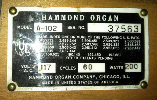 Opmerking: de A-105 is op zijn beurt weer geheel identiek aan de C-3, met dien verstande, dat de A-105 is uitgerust, met een ingebouwd versterker en reverb systeem, terwijl de C-3 een extern versterkingssysteem nodig had.