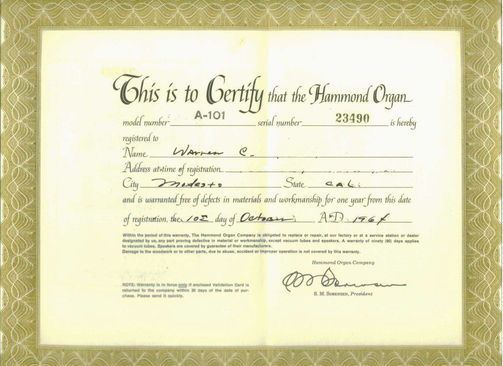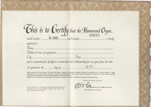 Hieronder het originele garantie-bewijs;gesigneerd door S.M. Sorensen, President.