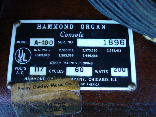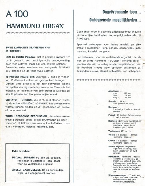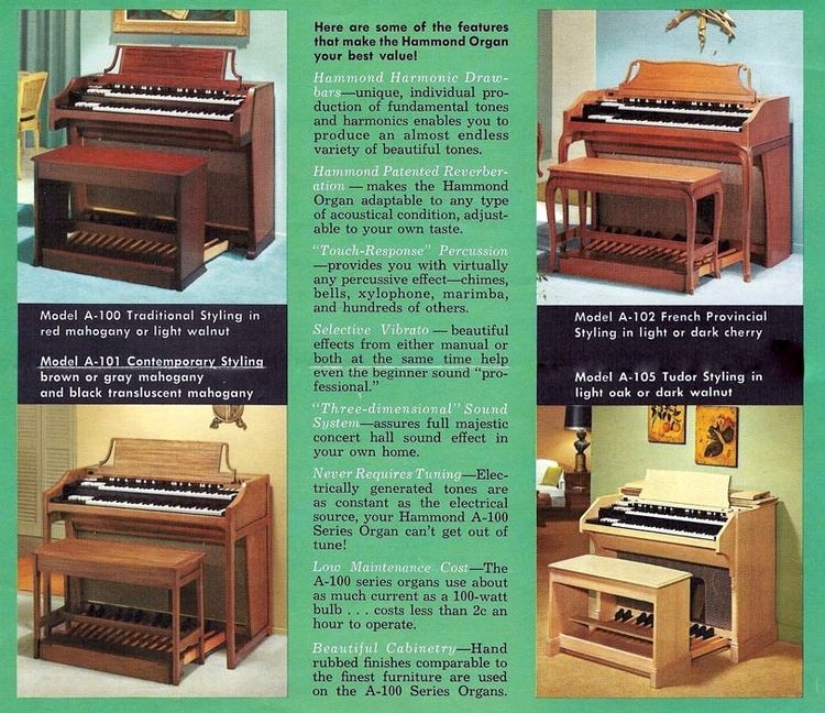 Hieronder: A-100 advertentie in het blad "Hammond Times" in 1959 :