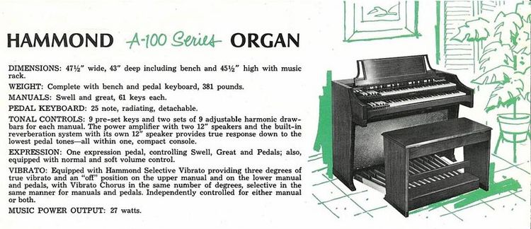 De opzet voor de A-100 series was een orgel, gelijkwaardig aan de oude A, B, C modellen, maar ditmaal met een ingebouwd versterker- en speaker-systeem, zodat hij geheel zelfstandig kon werken en voorzien van de bekende percussie- en vibrato-groep.
