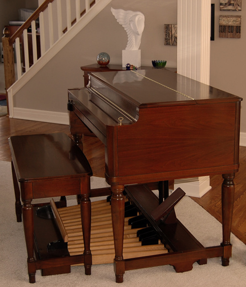 De spinetmodellen echter kennen de foldback niet. In deze modellen hoor je de voetmaten helemaal niet meer vanaf de toetsen waarop ze op de consolemodellen worden herhaald.