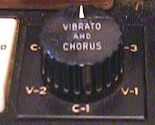 Geheel links van de drawbars zitten 3 registertabs met van links naar rechts: "volume soft", "vibrato bovenmanuaal aan/uit" en "vibrato ondermanuaal aan/uit". Tussen deze registertabs en de drawbars van het bovenmanuaal zit een draaiknop met 6 standen: 3 standen voor het vibrato (V1, V2 en V3) en drie standen voor het chorusvibrato (C1, C2 en C3).