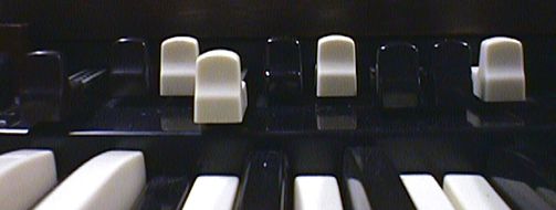 Boven deze percussiegoep zit de netschakelaar en de startschakelaar van het orgel.