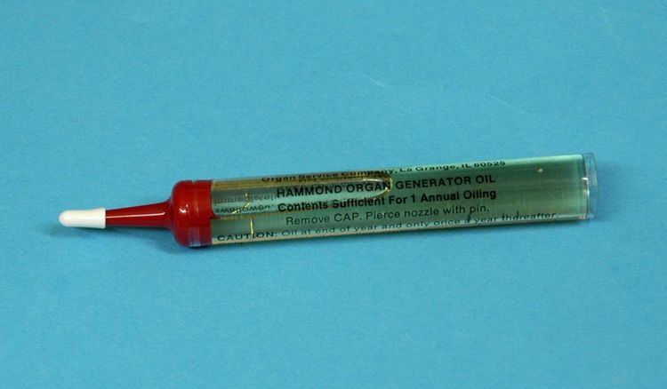 In de cupjes moet speciale Hammondolie (zuurarm en harsvrij). Door elk jaar 1 ml olie in elk cupje te doen zuigen de katoenen draadjes door capillaire werking de olie op en vervoeren deze naar de lagers.