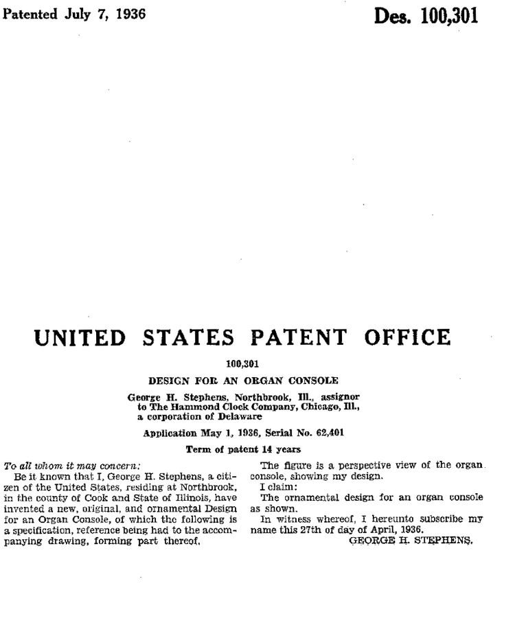Je ziet, dat de firma nog Hammond Instrument Co. heette. Dit sloeg niet op muziekinstrument, want er werden meerdere produkten op de markt gebracht, zoals hier te lezen is. Hiervoor was het nog de clock-company.