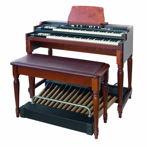Unlike the traditional XK-system, the Mini-B is shipped completely assembled from the factory with 25 note pedalboard and matching bench.