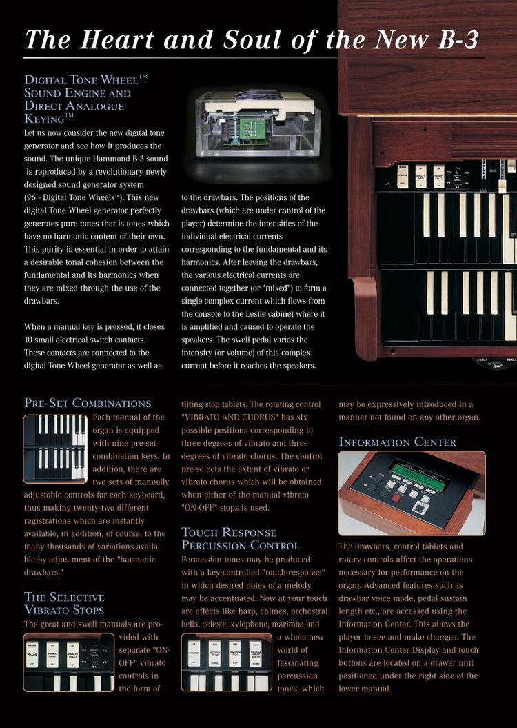Zoals de naam "Classic" aangeeft heeft een en ander natuurlijk ook te maken met het originele en vooral traditionele B-3 meubeldesign, dat al dateeert van 1934. Met de NEW B-3 werd gestart in 2002, maar we kijken eerst maar eens naar wat promotie materiaal van toen.