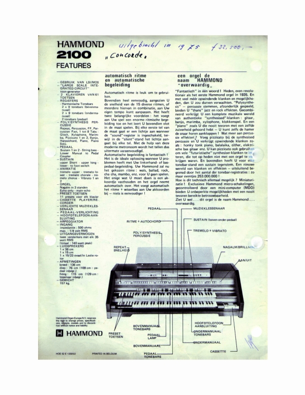 Hammond bouwde van 1972 tot dec. 1976 de 2100 series, waarvan hier de specificaties: