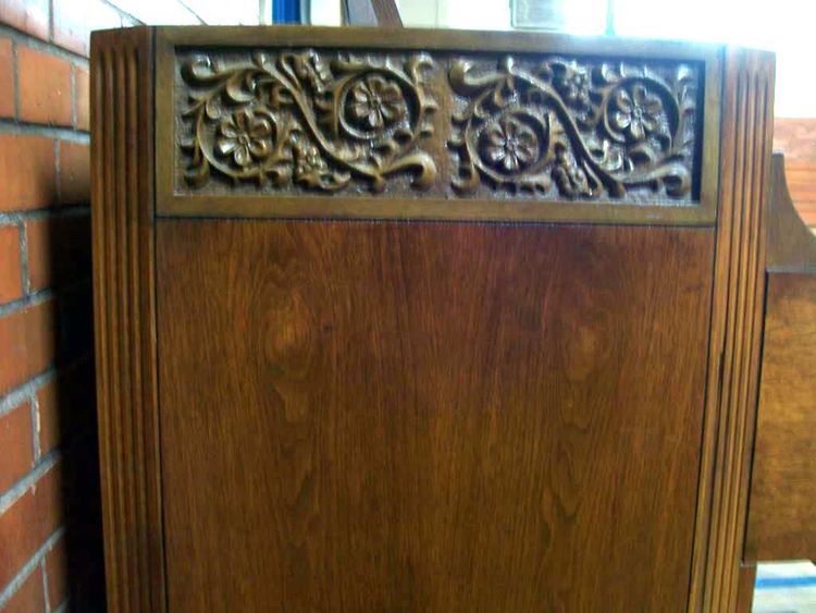 Nog zeldzamer is deze uitvoering, genaamd: "designer styles for the UD domestic market" (let op de lessenaar, die hetzelfde houtsnijwerk meekreeg als de zijkanten van orgel en bank).