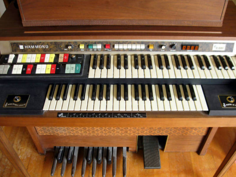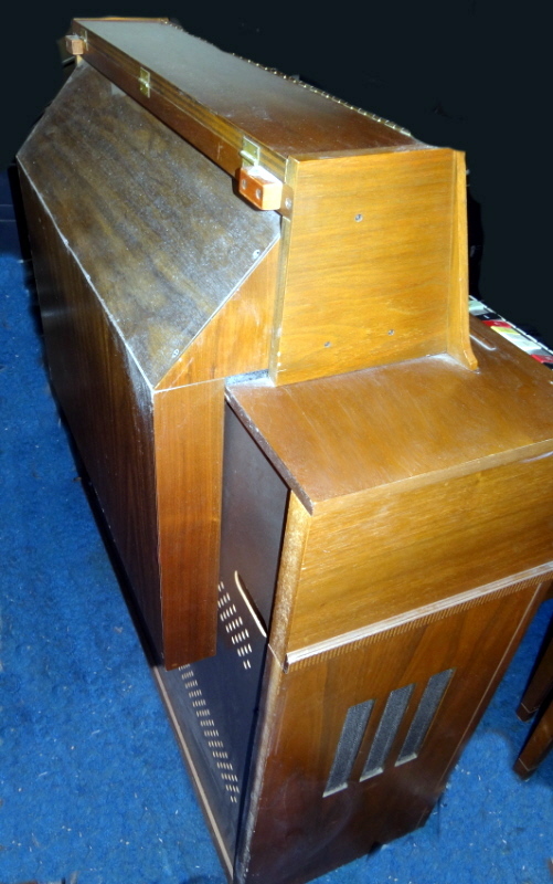 Tot slot nog een zeer uniek orgel. In en op dit 9800-model is een player-unit gebouwd, waardoor het orgel d.m.v. de bekende papieren pianola-rollen uit zichzelf kon spelen.
