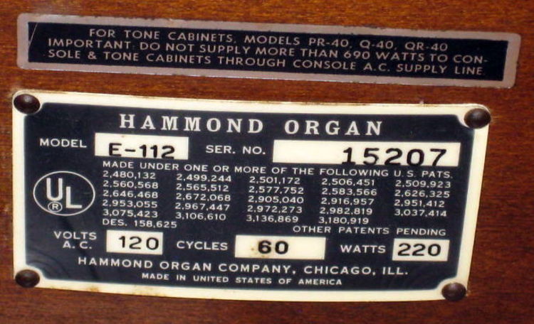 De E-112 is zowel in Londen, de USA (de meeste), als in Antwerpen gebouwd tussen sept. 1965 en sept. 1969 in "traditional walnut" en met 25-tonig pedaal.