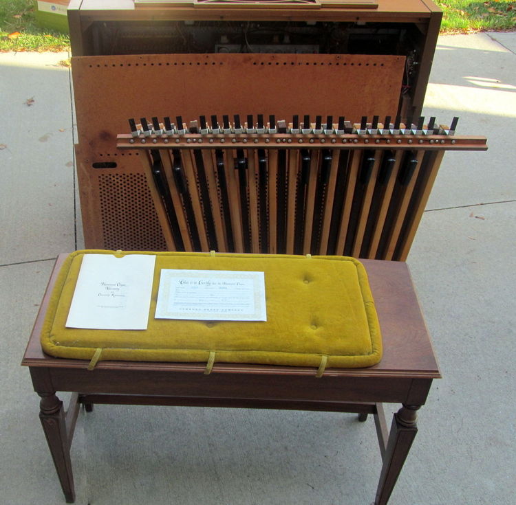 Hieronder een E-182. Dit model werd aanvankelijk (ook) met een bruin registerpaneel geleverd. Latere instrumenten werden met een zwart register paneel geleverd.