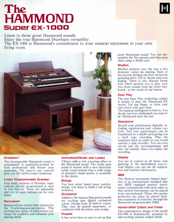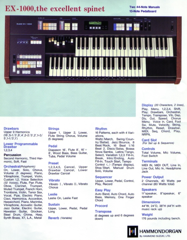 De EX-1000 was een van de eerste modellen, die door HAMMOND SUZUKI in Japan werd gebouwd. Later werden de EX 700 en 800 aan het programma toegevoegd.