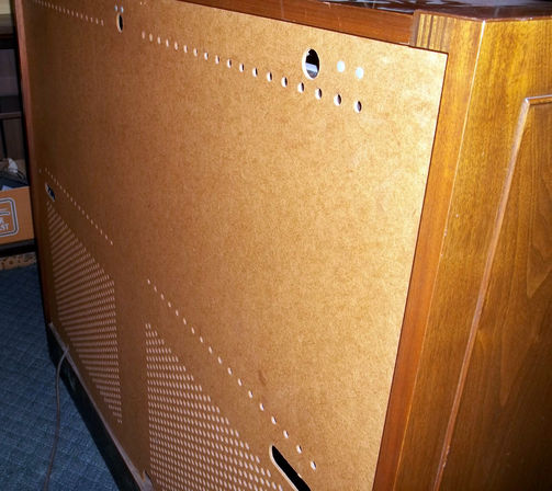 Hier zonder de lessenaar. Let op de bewerking van het luidspreker-doek.