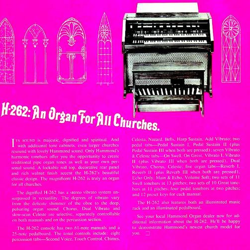 In 1969 maakte Hammond het model H-262 (ook Institutional) model.