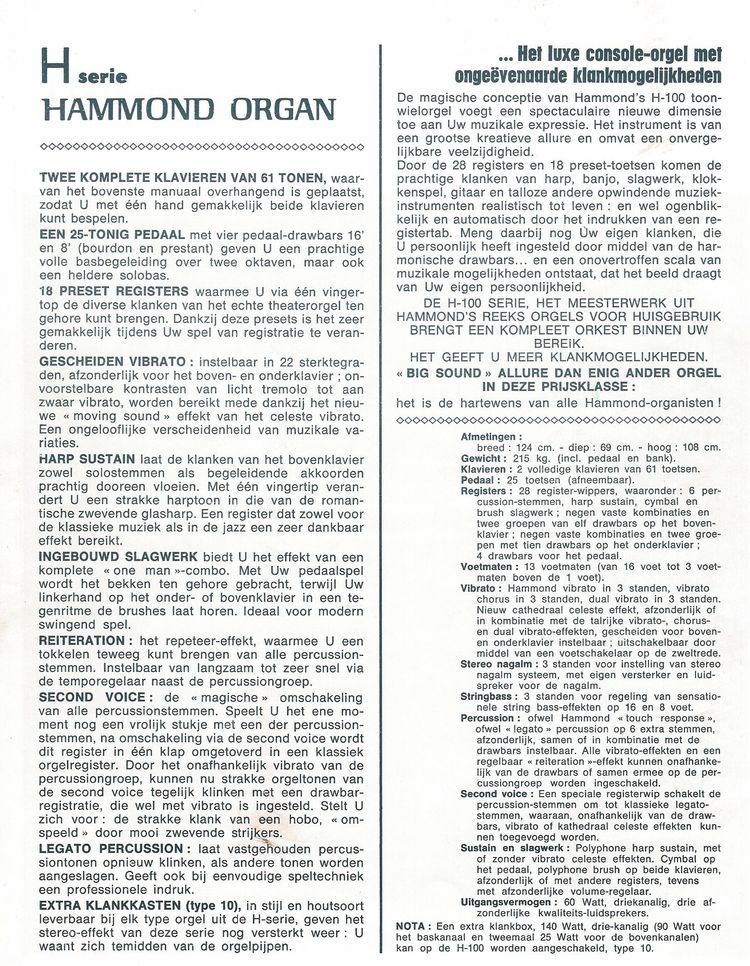 Hier nog een link naar een H-100, die zowel elektrisch, mechanisch als qua meubel ongelooflijk uitgebouwd is.