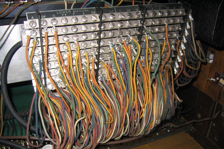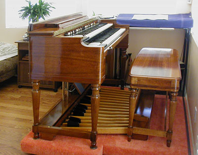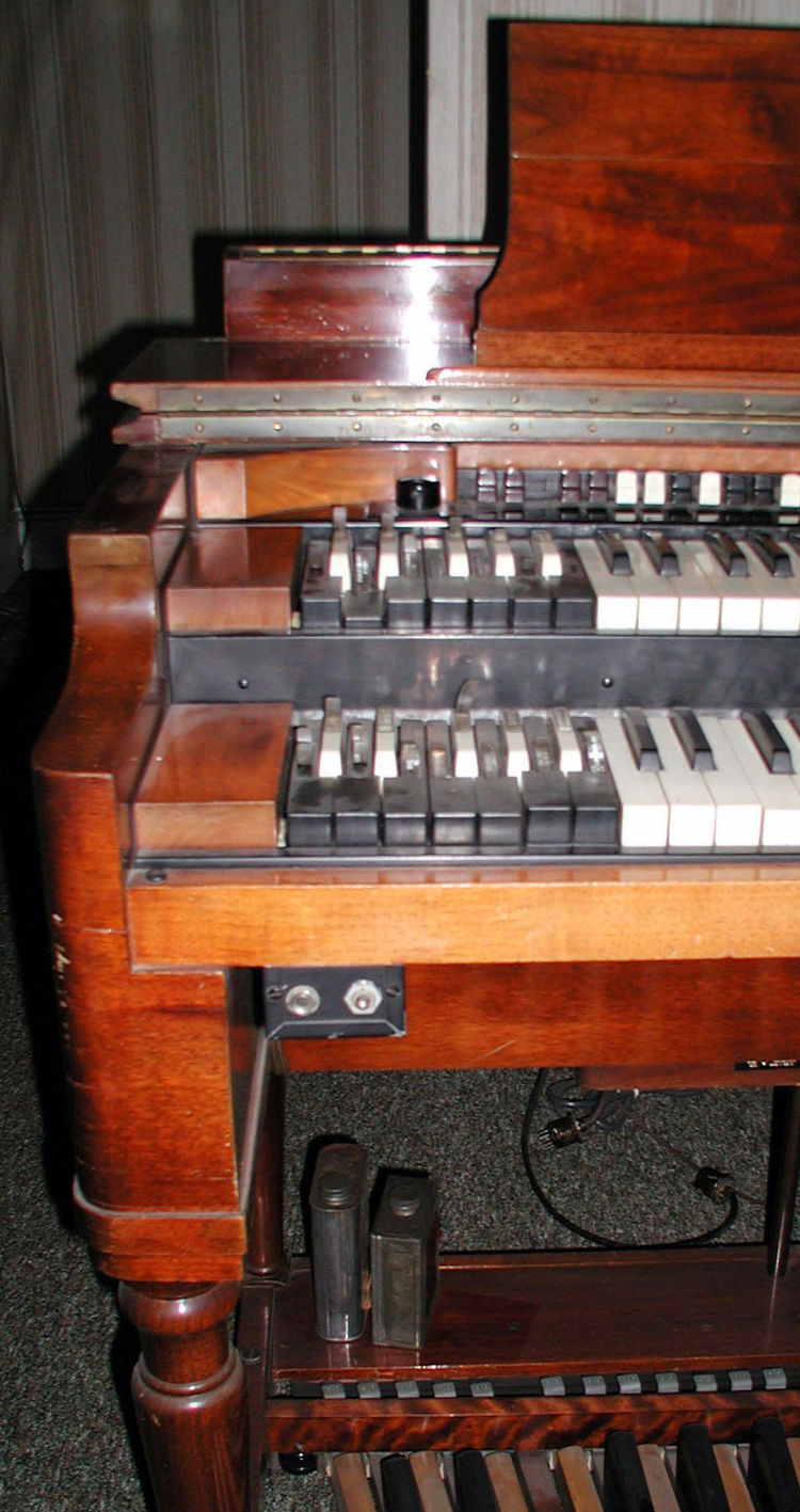 Hammond "serial number one" has a far less glamorous history. Built in early 1935, it was shipped to J. W. Jenkins Music Company, Hammond's agency in Kansas City. Bob Pierce, a young salesman, had the task of demonstrating it through-out the Midwest. Pierce ultimately became a successful Hammond and Steinway dealer in Long Beach, California and is the author of the Pierce Piano Atlas. He recalls in his book, "Three of us, an organist, a maintenance man and I traveled in safari-like fashion with a van and an automobile for the next three years. We drove through Kansas, Nebraska, Oklahoma, Iowa, Arkansas, and Texas, hitting every little burg with a population over 100. We demonstrated the Model A on university campuses and radio stations, for women's clubs, in music stores and churches, and even mortuaries. The only places we avoided were the gin mills." When the organ was retired as a demonstrator in 1938, it was sold to the Paseo Methodist Church in Kansas City where it remained for the next eleven years. "Serial number one" is now part of the Smithsonian Institution's collection of important American " firsts" and there is little likelihood it will be destroyed by fire or other catastrophe.