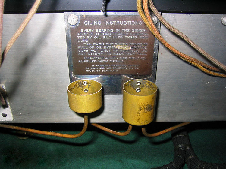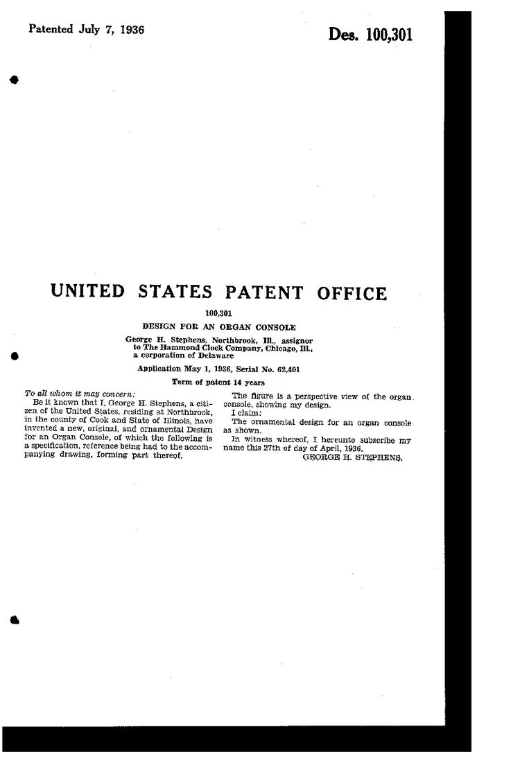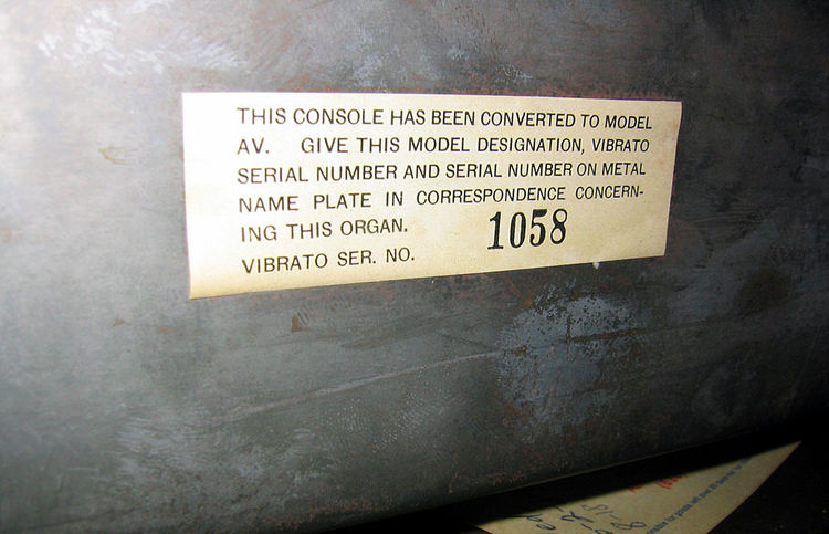 Waarom? Laurens Hammond moest allerlei rechtzaken voeren, flink dwarsgezeten door de pijporgel-fabrikanten. Daarom werd hij door de FTC (Federal Trade Commission) in 1936 gedwongen dit op zijn serieplaatjes te vermelden om toestemming te krijgen zijn instrumenten te verkopen, zolang de hele zaak nog liep.