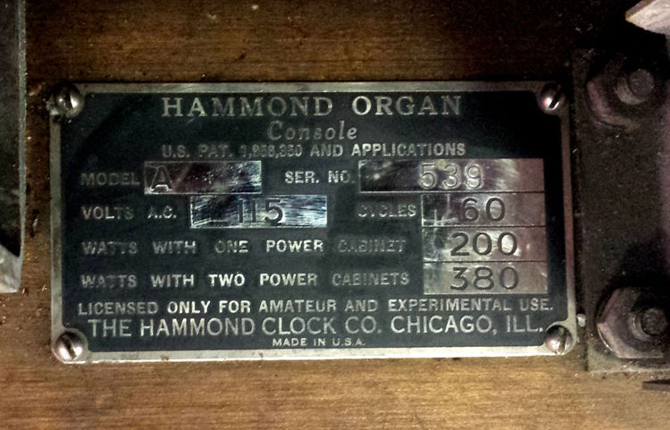 Technically, even "serial number one" was not the first Hammond. Laurens Hammond and his engineers built the proto-type organ in 1933. The prototype was used for research and as a patent model. Hammond's organ patent was granted on April 24, 1934, and production of the Model A officially began in June of 1935.