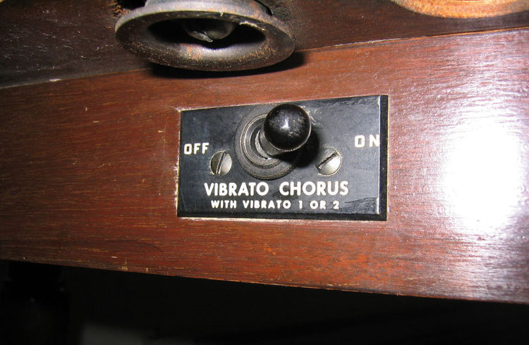 1 tremulant control, want er was in de eerste jaren nog geen vibrato-scanner. De scanner zou pas later uitgevonden worden door John Hanert en pas in de BV en CV toegepast worden. Zo zag de tremulant-unit er uit.