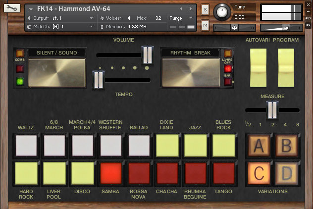 16 combinable re-created rhythms with 4 variations each.