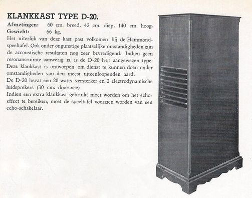 Hammond model D-20 kwam in produktie van October 1937 tot Maart 1952.