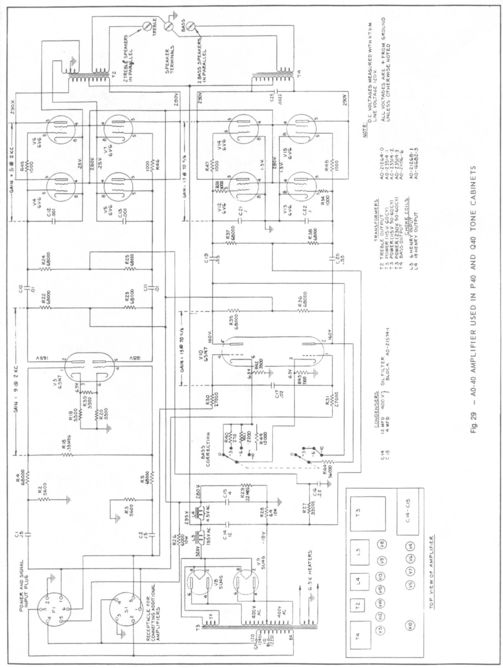 Model PR-40 and QR-40 Specifications (Continued) The QR-40 is electrically similar to the PR-40 but with its utility type cabinet is only used where appearance is not a consideration, such as in tone and reverberation chambers. The treble direct speaker is normally mounted in the top. In an unusual installation where the ceiling is very low, or cabinets are stacked or radiation is otherwise restricted, it is possible to move this speaker to the hole provided in the front. The metal diffuser in front of the speaker must also be moved, and the wooden cover must be attached under the top to close the hole.