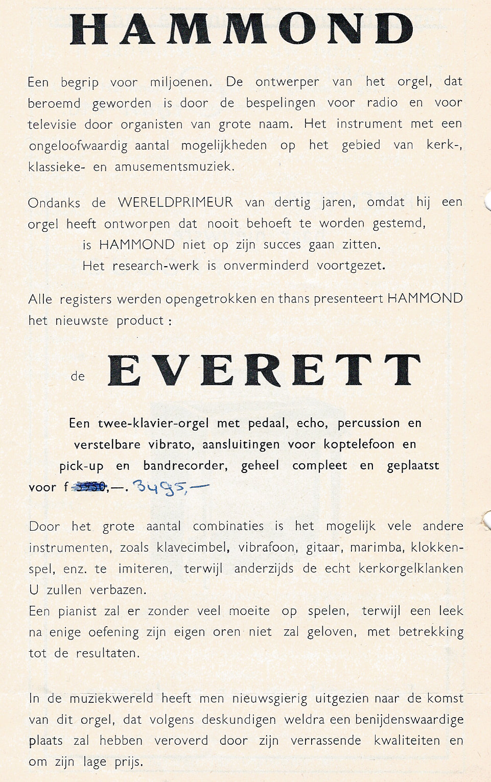 Deze folder dateert van begin 60er jaren, toen Hammond Noord in Groningen actief was.