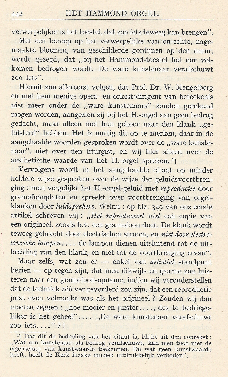 over het " Aesthetische" aspect van het Hammondorgel binnen de kerk