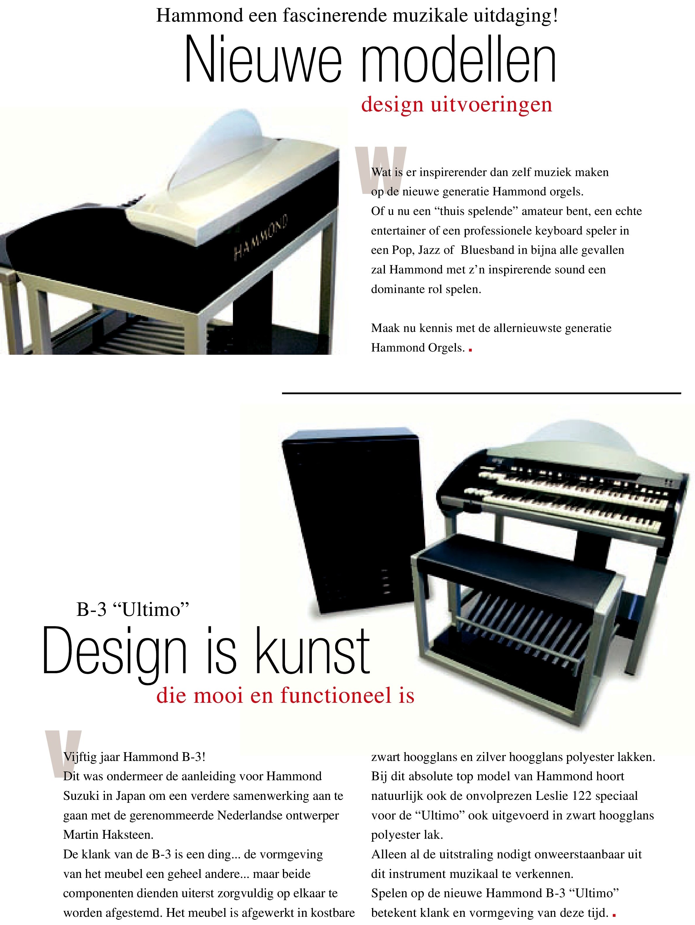 Het verschil met een New B 3 zit hem hoofdzakelijk in het 13 tonige pedaal, hetgeen toch een flinke ruimte besparing oplevert. Qua uitvoering is het toch ook helemaal "Ultimo"?