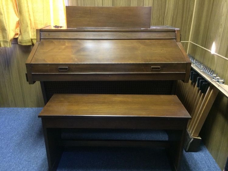 16262 Institutional walnut 1976- USA Kerk-model,andere registers,klep,geen ritme