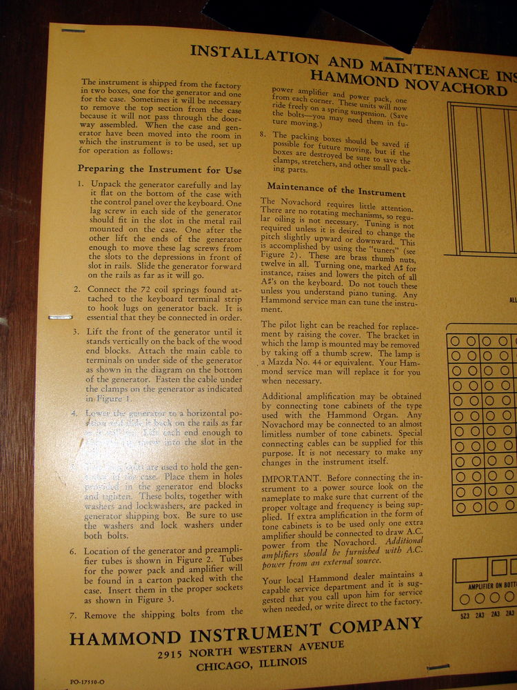 Ook bevond zich hier de garantie voorwaarden.( 3 jaar op de Novachord, niet op de buizen):