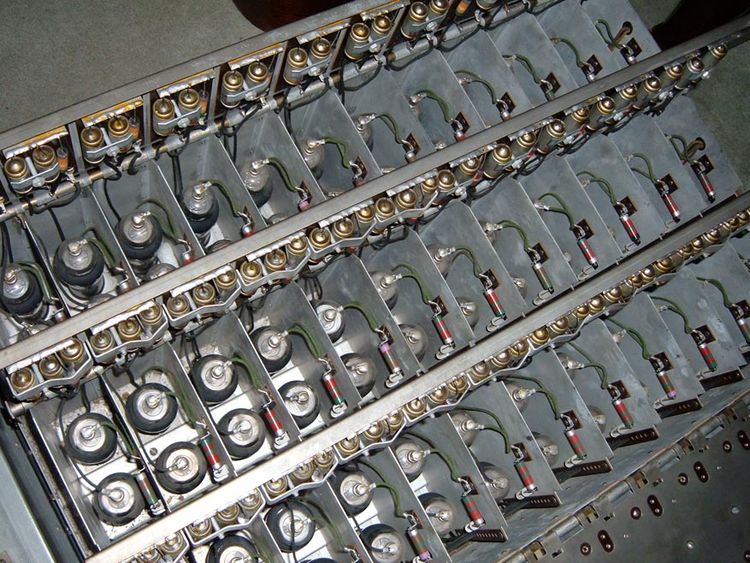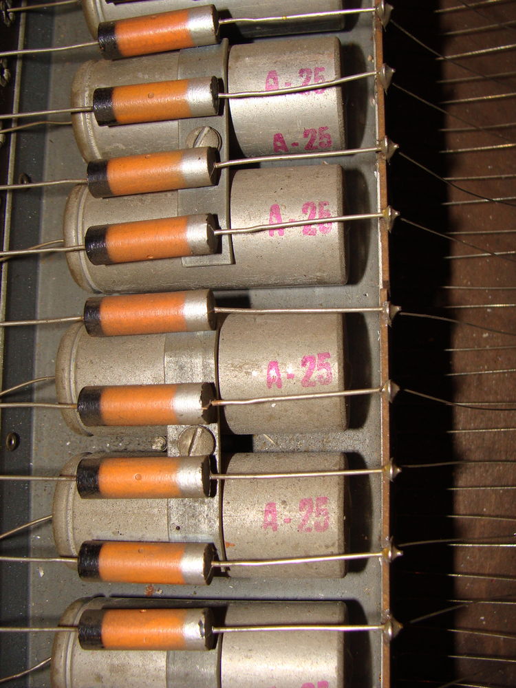 Hieronder: de elektronika die het toetsenbord verbindt met de generatoren.