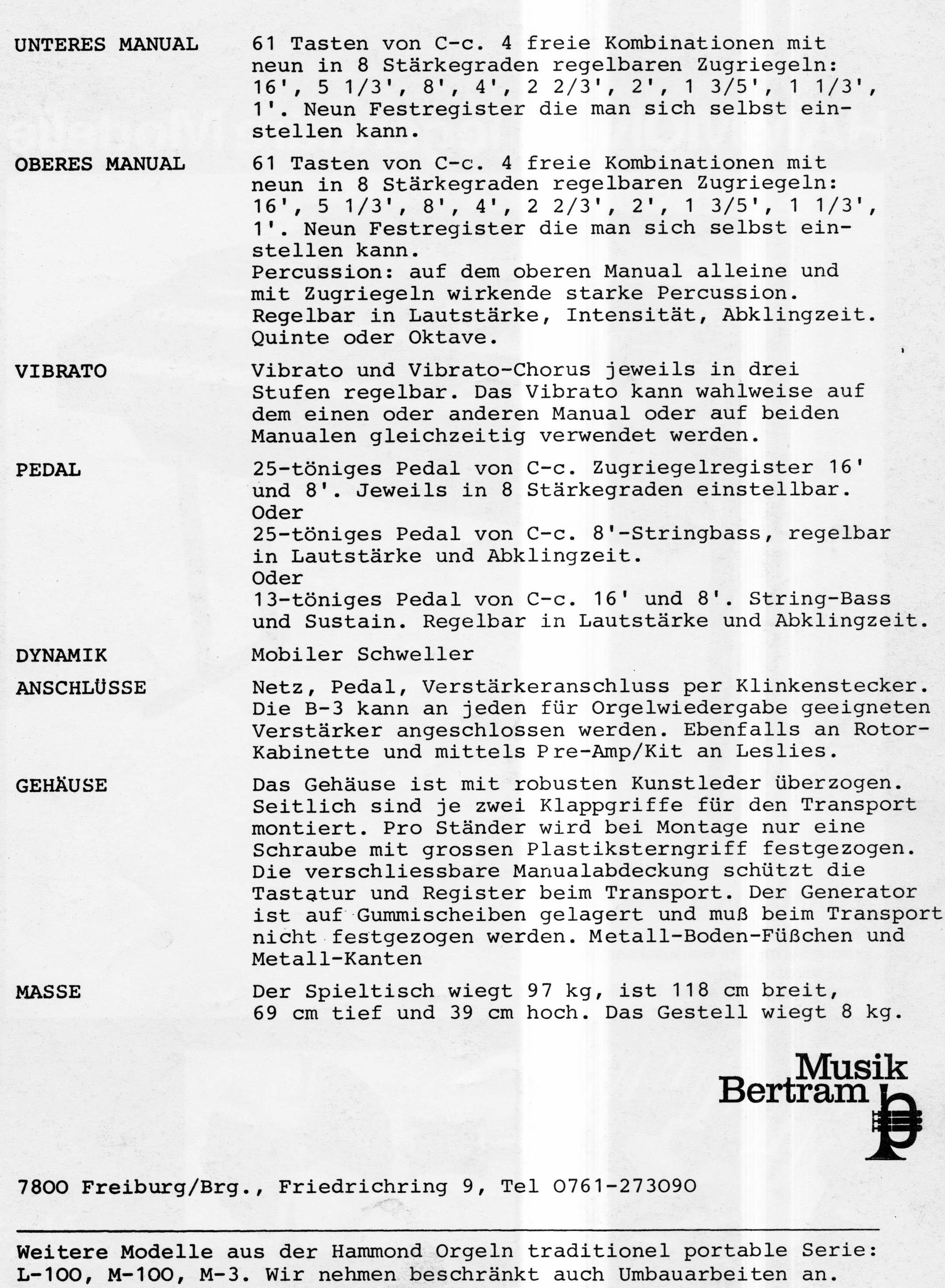 Persoonlijk ben ik nooit gecharmeerd geweest van het feit dat wie dan ook orgels ging kannibaliseren. Bovendien zijn er oudere modellen gebruikt zoals B 2 en C 2 die met Trek apparatuur etc van percussion werden voorzien. Niet helemaal mijn ding dus, te meer, daar een portable uitvoering ook beslist nog zwaar was om te transporteren. Desalniettemin, Bertram is knap aktief geweest op dat terrein en dat is ze vanzelf niet kwalijk te nemen.