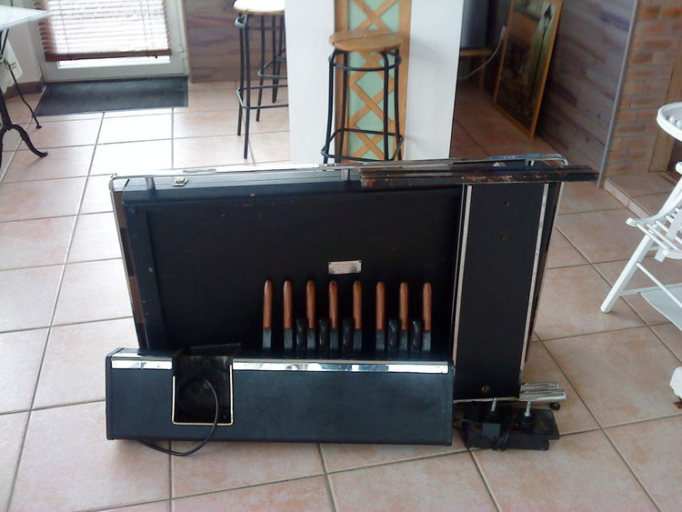 Dat probleem was bij de B-200 opgelost, aangezien de kabels in de onderkant van het orgel werden geprikt. Ging dan iemand op je kabel staan, dan viel deze er alleen uit. Opnieuw inpluggen en het feest kon weer doorgang vinden.