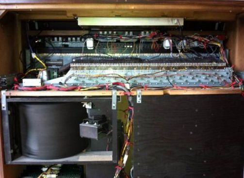 Aan de linkerkant zien we de RotoSonic Leslie-eenheid en de 6x9 speaker.
