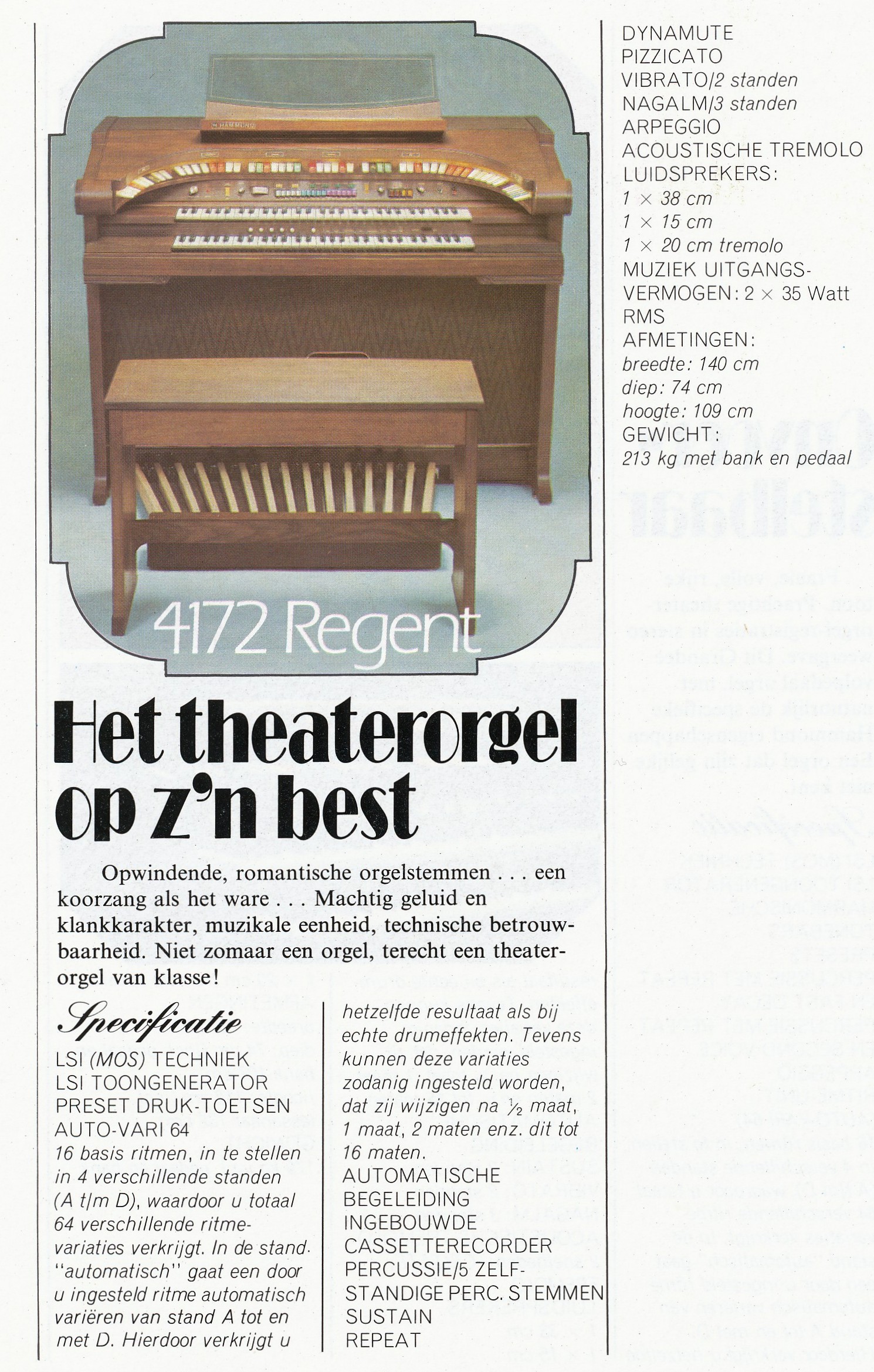 Hammond begon in 1973 met de Regent 4000 series,