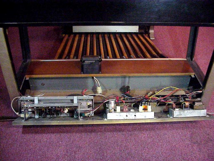 In de pedaalbak werd zowel de Sustain als de Reverb unit ingebouwd. Knap, hoe ze het voor elkaar kregen, dat je geen gebonk van de pedalen doorkreeg.