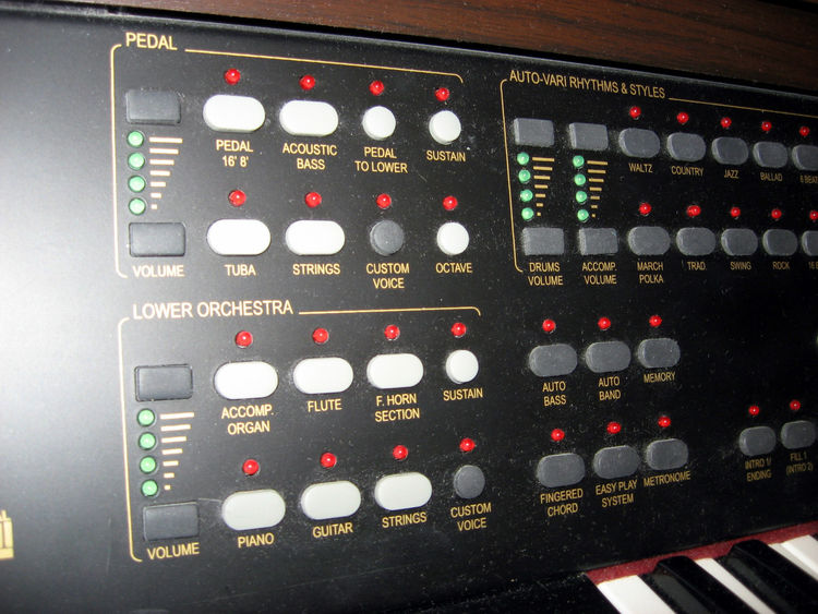 Auto-Vari: 16 rhythms each with two programmable variations, Intro/Ending, Fill In 1, Fill In 2, Adjustable Volume, Tempo Control, Stop/Start, Auto Start.