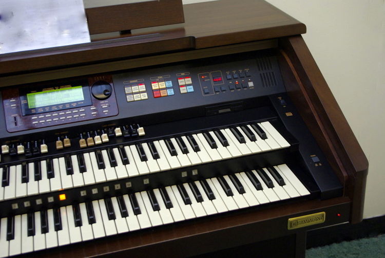 Conveniently located between the keyboards, 100 programmable registration presets (10 banks of 10) give instant recall to all of your favourite voice combinations. Many interesting and usable registrations, representing different kinds of music are factory preset, but many of you will want to reserve for your own ideas or for entering from prerecorded discs.