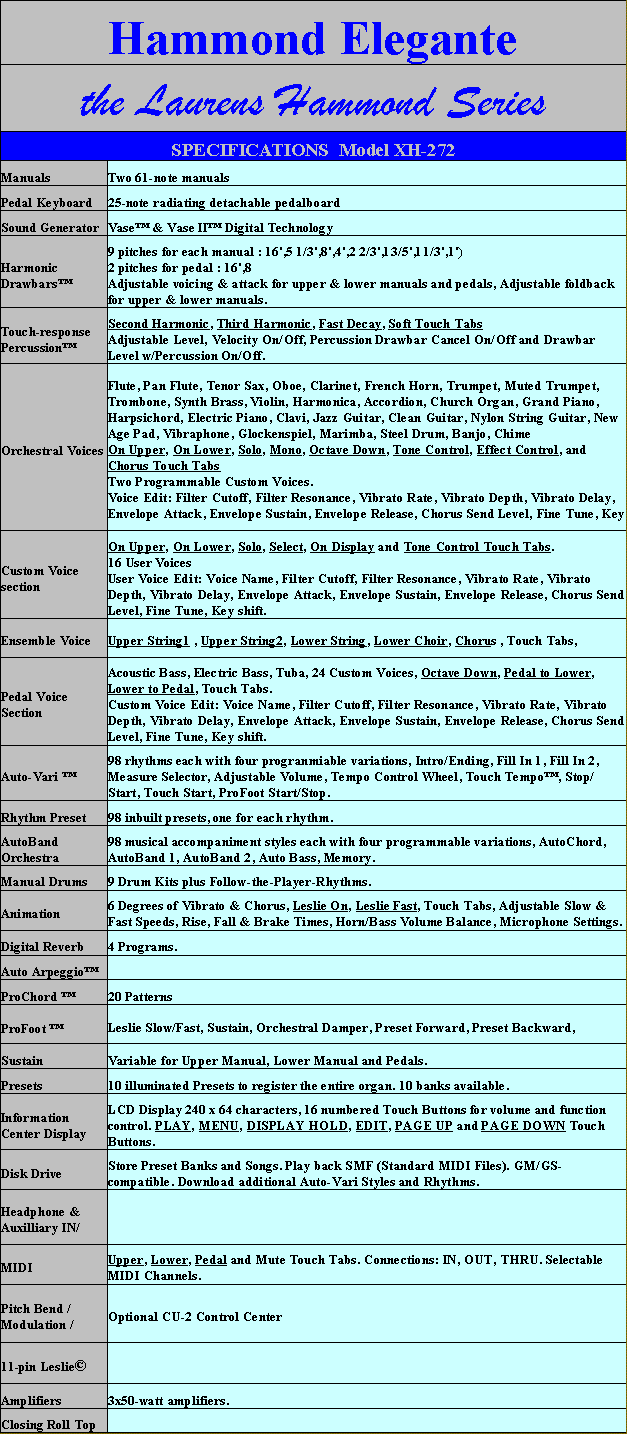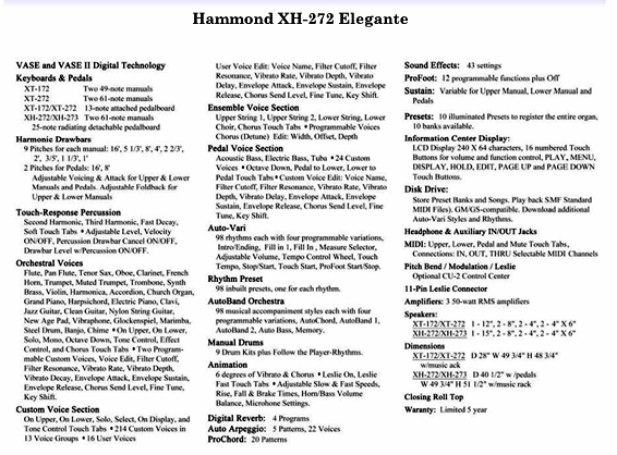 Hoewel deze instrumenten in hun actualiteit binnen de Hammond serie destijds "aan de top stonden" waren deze orgels toch wat minder imposant om het eens diplomatiek uit te drukken. Tijdens het spelen kwamen de XH en XT toch minder indrukwekkend op je over, zeker minder dan de "Good Old Elegante" ook al was deze technisch natuurlijk inmiddels wel wat achterhaald. Echter, nog steeds nemen velen graag plaats achter de echte Elegante.