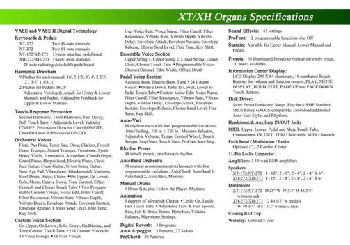 Naast de drawbar secties, had je ook een behoorlijk aantal orchestrale stemmen, die aan te passen waren aan de persoonlijke smaak en als zodanig weer op te slaan waren. Nieuwe ritmes waren te koop en via een floppy-disk in te laden.
