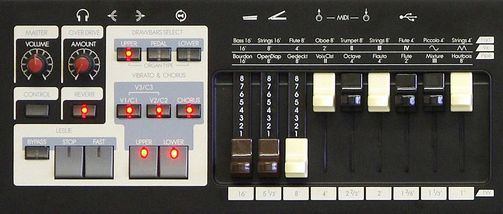 Ook de Farfisa, het Vox- (het Doors orgeltje) en een goed kerkorgel met 28 registers zijn aanwezig. Ál deze orgels-types zijn via de drawbarset eenvoudig te registreren.