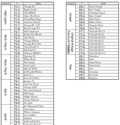 Voicing: Manuals: 6 choices (B-Type 1, B-Type 2, Mellow, Vx, Farf, Pipe)