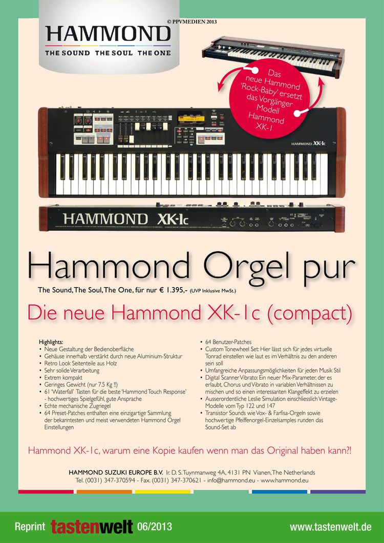 Hammond kwam uit met de XK-1c, een nieuw en vederlicht één-klaviers model. De C staat voor compact.